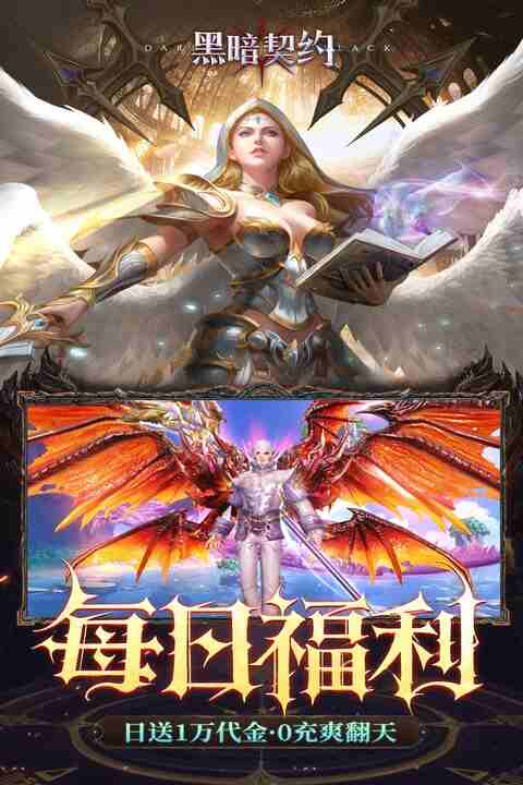 3D魔幻MMOARPG手游《黑暗契约》免费版重燃卓越战火!开局VIP8,初始送5000代金券,每日送1万代金券,一直送不停,真充卡寻宝钥匙无限送,一秒不用等,在为你带回经典爽快战斗体验同时,更为你带来激爽炫战的豪华视觉盛宴。宏大世界观为你打造“真魔幻”的沉浸式游戏体验,史诗级还原卓越战场,重新踏上这一望无际的魔幻大陆,开启你的“弑神之战”,觉醒“大天使装备”激活炫酷外观,决战“最强王者”,挑战极限魔幻大陆,就等你来制霸这一切。